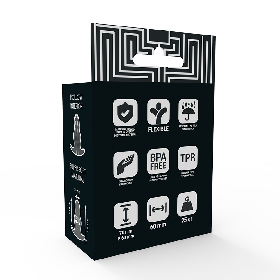 Longueur totale : 7 cm Diamètre total : 6 cm Longueur insérable : 6 cm Diamètre du petit anneau : 2,5 cm Diamètre du grand anneau : 3,5 cm Diamètre intérieur : 3 cm Matériel: TPE Imperméable. Sans phalatos.