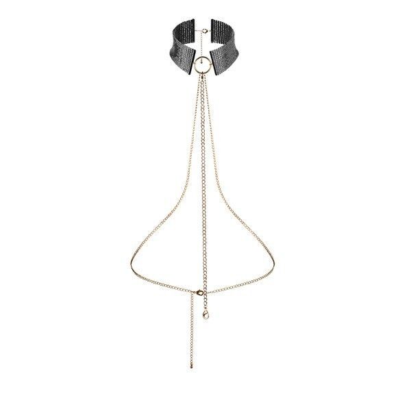 Accessoire tour de cou en maille métallique réglable et ceinture en chaîne.