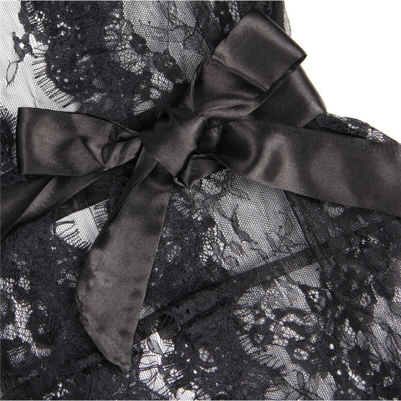 L’ensemble comprend un string assorti qui complète le look avec une touche séduisante et sensuelle. Son design en dentelle noire met en valeur vos courbes de manière tentante, tandis que sa coupe ajustée et élastique garantit une expérience confortable et séduisante.