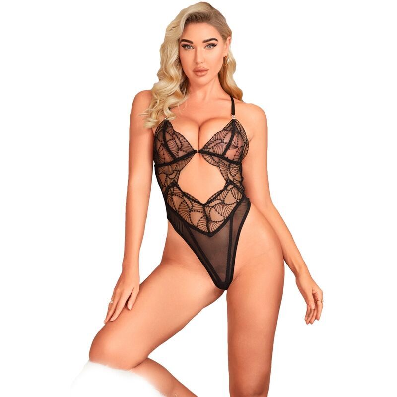 Ce teddy est une pièce de lingerie provocante et séduisante qui attirera sans aucun doute l’attention. Réalisé en dentelle noire avec un design découpé en creux, ce teddy a un aspect audacieux et sensuel qui montre la peau de manière suggestive.