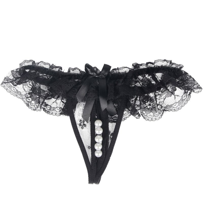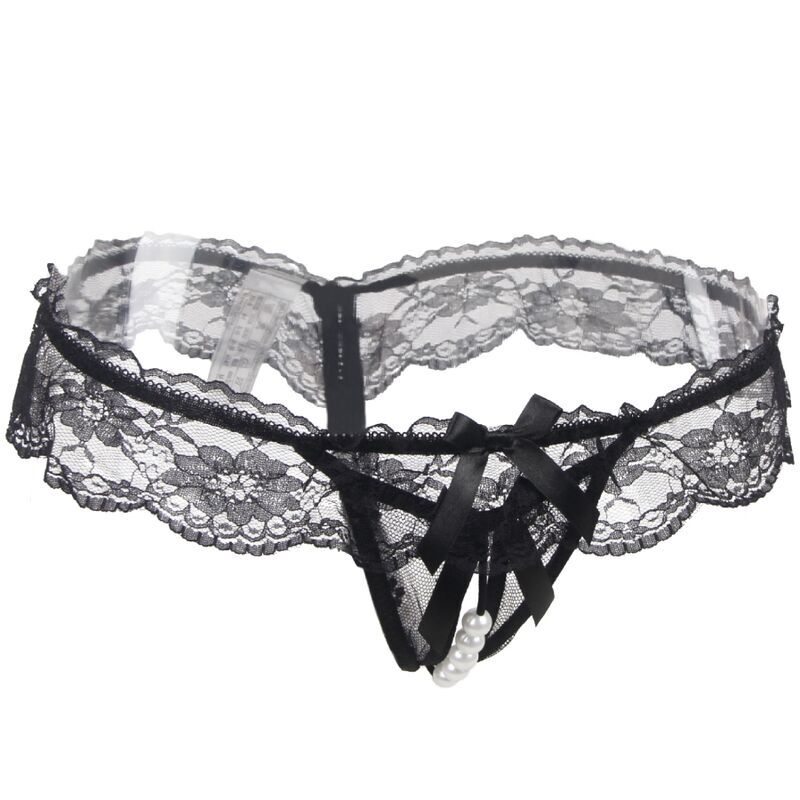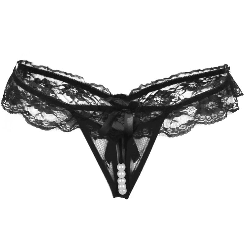 Plongez dans la tentation avec notre string en dentelle noire avec fente.