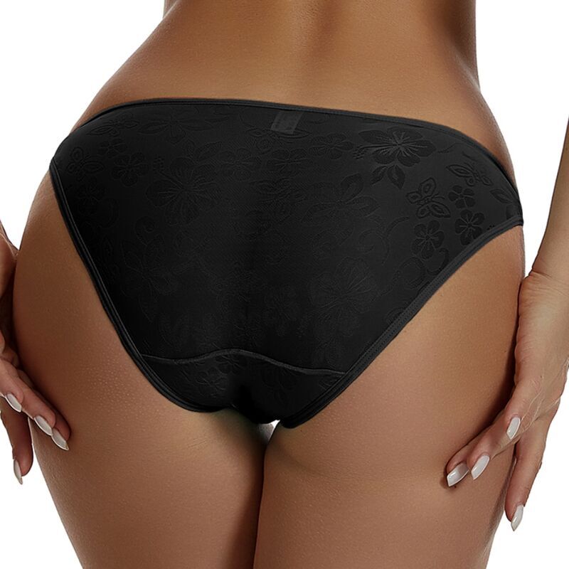Ce qui rend ce string vraiment spécial, ce sont les délicates bandes de dentelle qui le décorent. Ces bandes ajoutent une touche de sophistication et de provocation, créant un contraste sensuel avec le fond noir profond.