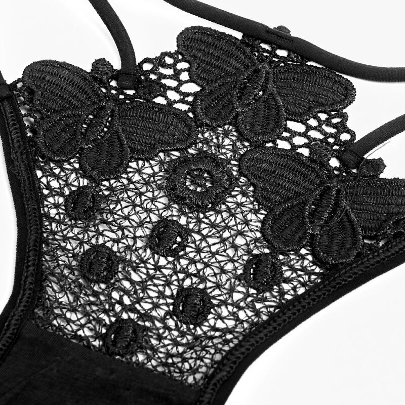 Faites l’expérience de la séduction dans sa forme la plus élégante avec notre string à bretelles en dentelle noire.