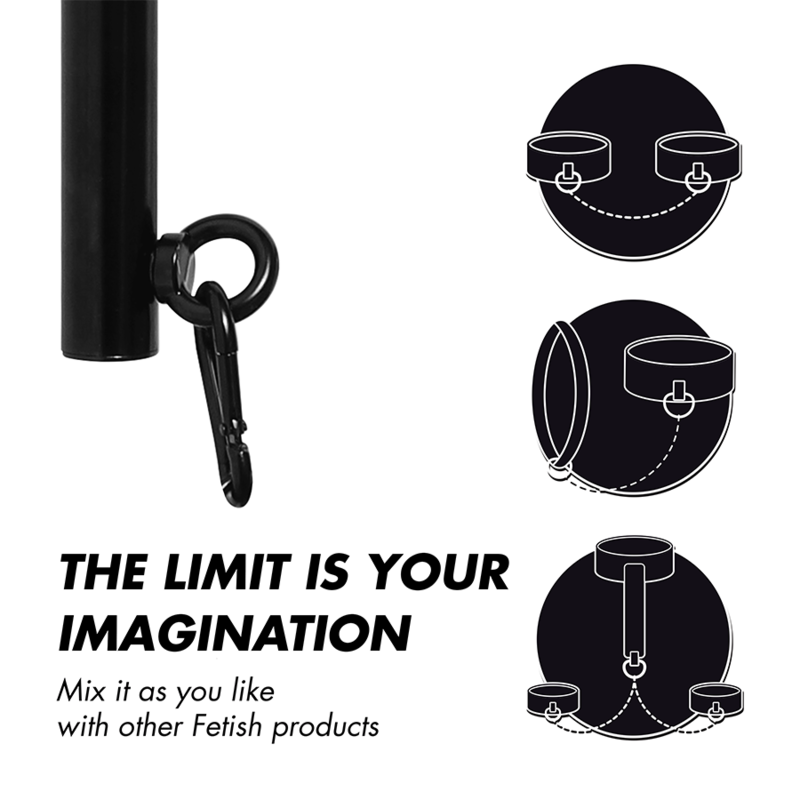 Barre : 62 cm Vous pouvez facilement attacher des menottes ou des cordes de bondage aux anneaux latéraux ou aux anneaux centraux, vous permettant de choisir entre une largeur de 41 à 62 cm.La collection Fetish Submissive est parfaite pour le BDSM, qualité et résistance adaptées à tous les jeux !